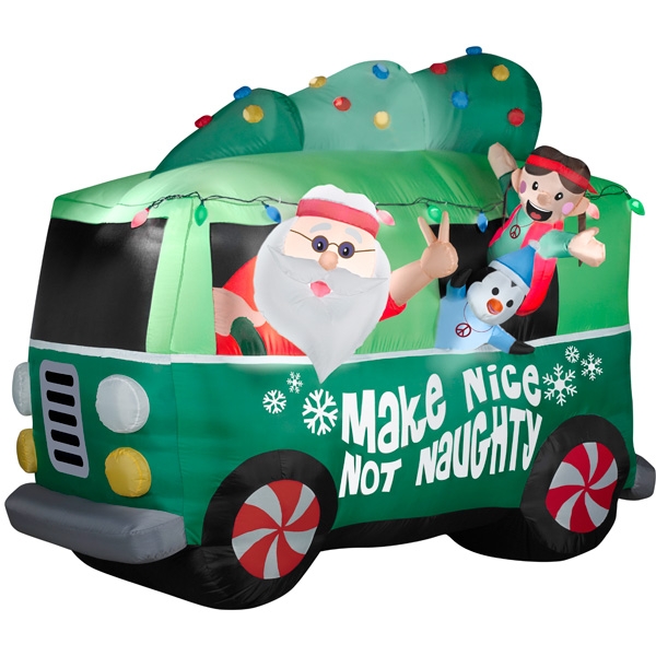 Peace Out Dudes! Santa, elf and penguin got their groove on while riding the hippie van.